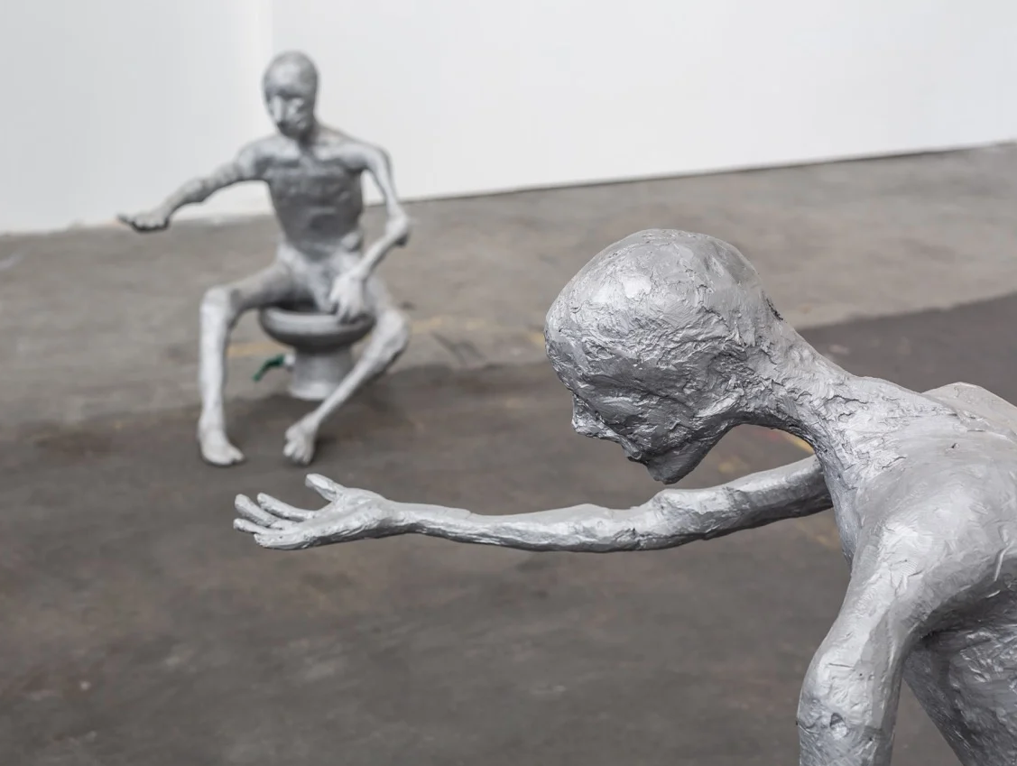 Atelier Van Lieshout artworks on view: Artist, Artist Producing and Curator (2018) and Invisible Hand (2012)