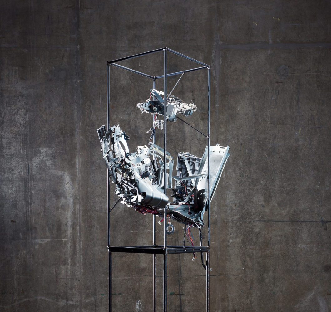Atelier Van Lieshout artworks on display: Birds (on image, 2017), Process 50 ton 50 mm (2016), Hydroform gastank 275 BAR (2017), The End of Everything (2017, video)