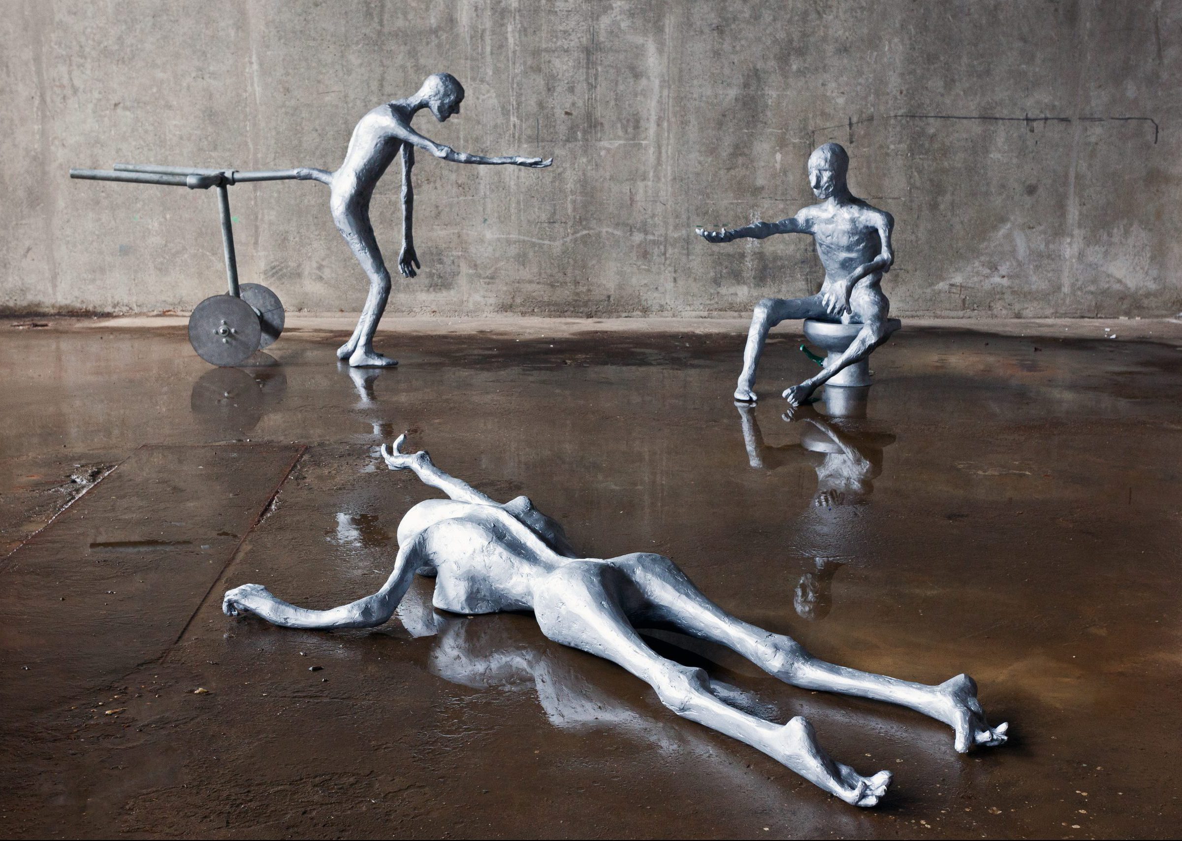 Artist, Artist producing and Curator (2018) are a series of works presenting the creatives as beggars; the scum of today’s society. The different sculptures form a group, which confirms and ridicules the position that these ‘slaves’ of the arts sector find themselves in.