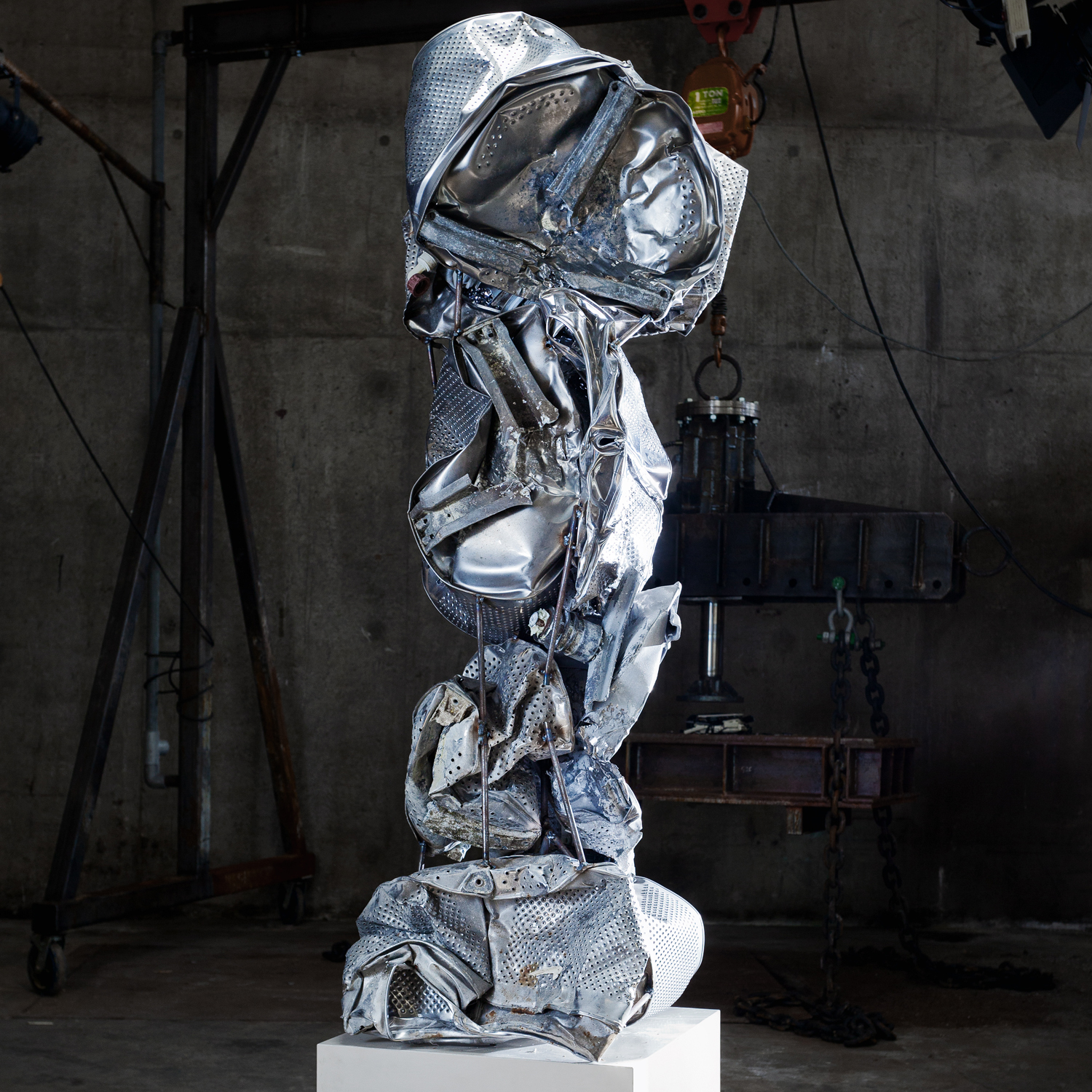 The installation consists of a group of raw, industrial artworks – Der Fliegende Holländer, The Press, The Hammer and The Shredder. These may be interpreted as machines for either construction or destruction, as a negative or positive force, as a break from tradition and a change for the future. The primary goal is to recycle, be it scrap, consumer goods, artworks, even Joep van Lieshout’s own creations.