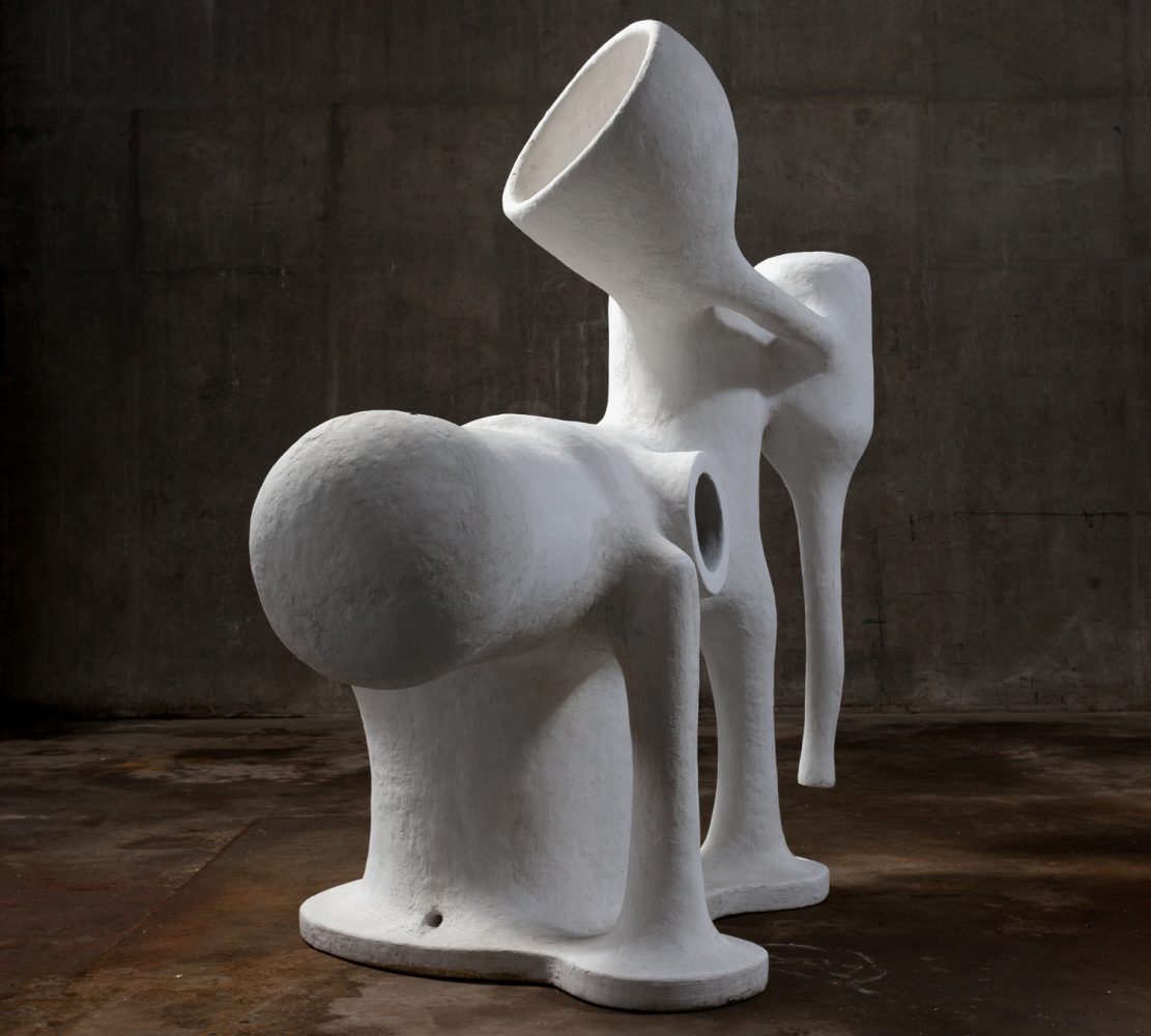 This sculpture offers the vision of an imaginary future farm, a utopian machine that functions similarly to the human body, which Atelier Van Lieshout sees as the ‘ultimate system’. As the scientific possibility of futuristic, genetic-hybrid creatures advances into reality, how far, or bizarre, will we be willing to go? Will we, as humans have in past eras, embrace technology with utter faith, believing it will manage to deliver solutions to problems like our world’s diminishing resources, and the insatiable hunger we have for more possession, consumption, and power?
